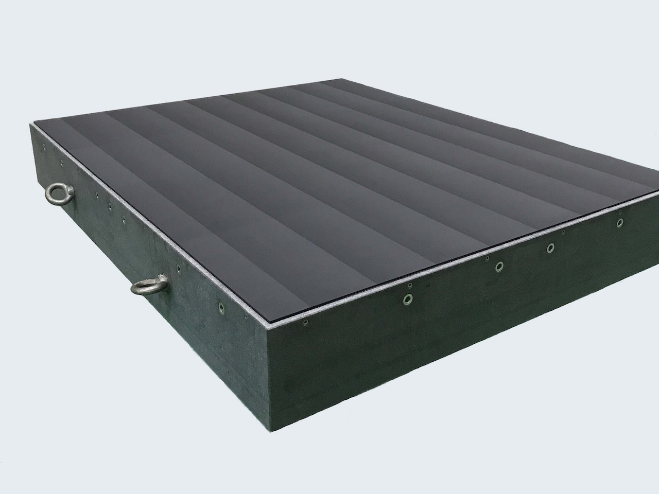 セラミクスをタイル状に張り合わせし、同一研削、ラップすることで一枚ものでの大型化、高精度化を実現。